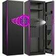【Modo de Alarma Inteligente】La caja fuerte para rifles cuenta con un sistema de alarma dual. Tras introducir la contraseña incorrecta tres veces, se activará el modo de alarma y sonará un zumbido durante 60 segundos. La alarma también sonará al agitar o vibrar la caja fuerte. Durante la alarma, puede introducir la contraseña correcta o abrir la puerta para retirar la batería y desactivarla. El sistema de alarma le permite guardar sus armas de forma segura en la caja fuerte para evitar robos.